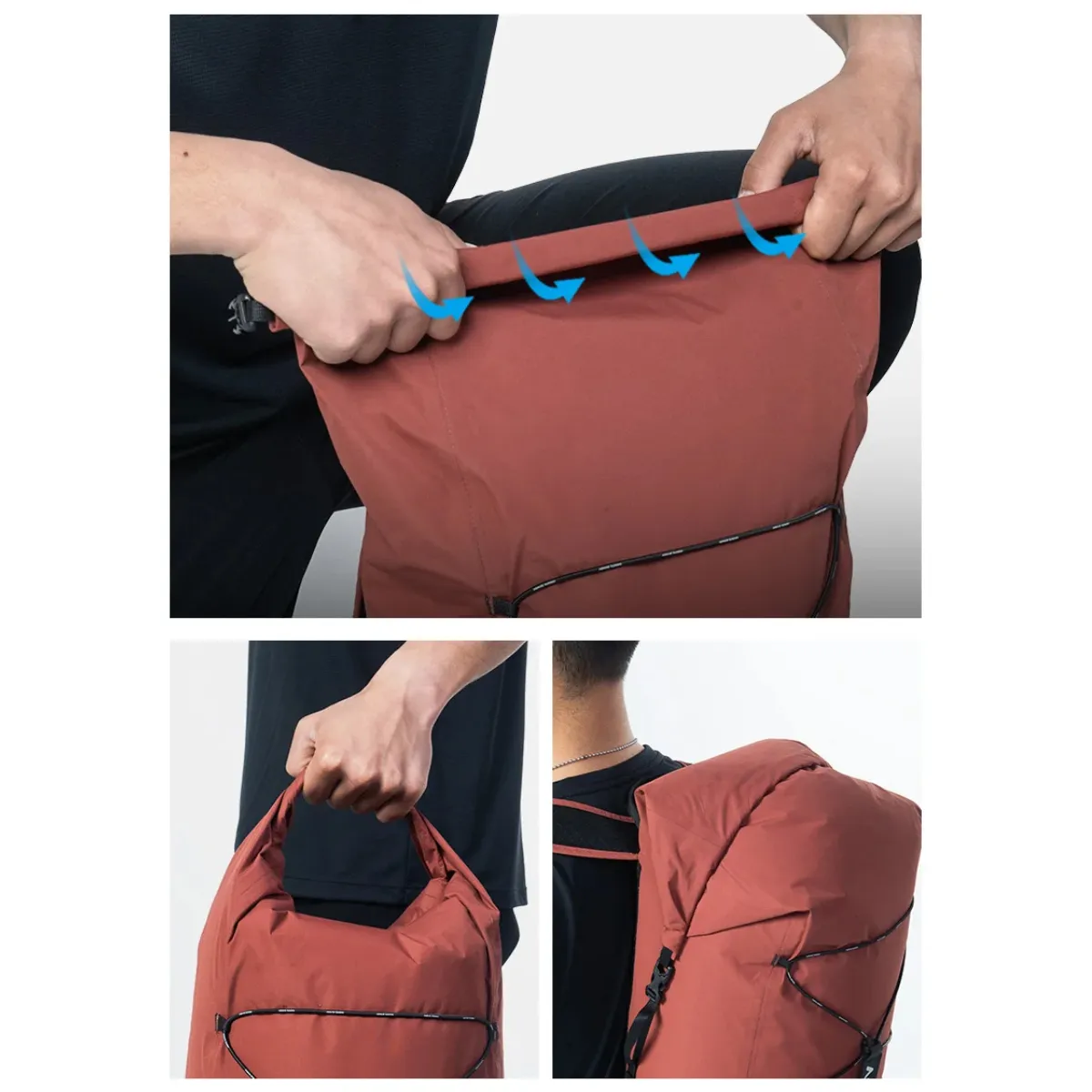 • Cierre principal roll-top + hebilla. El mismo cuenta con tejido resistente al agua y detalles reflectantes .