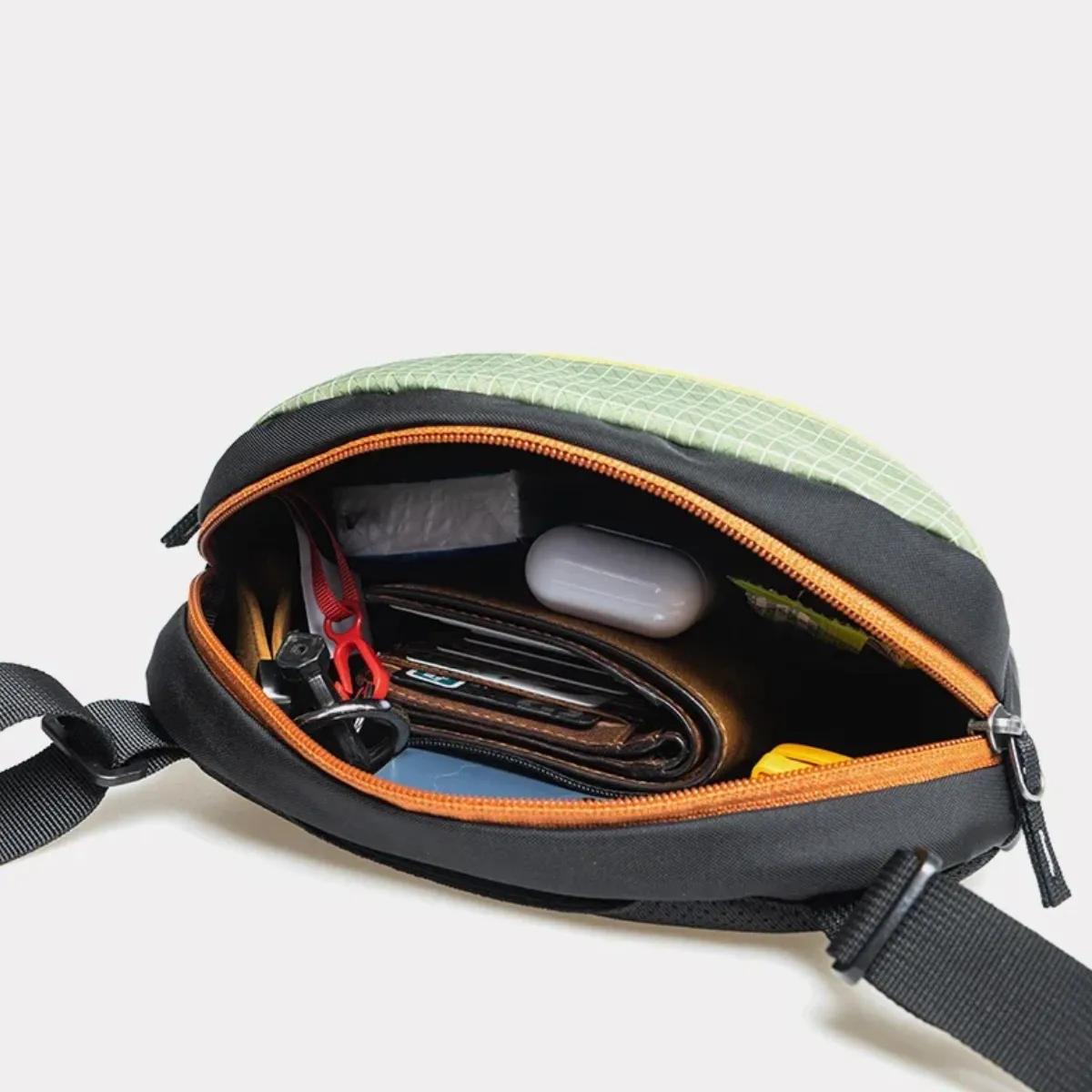 Bandolera ultraliviana diseñada para senderismo. Fabricada en Dyneema resistente al desgarro y al agua, para llevar tus esenciales y mantenerlos protegidos.