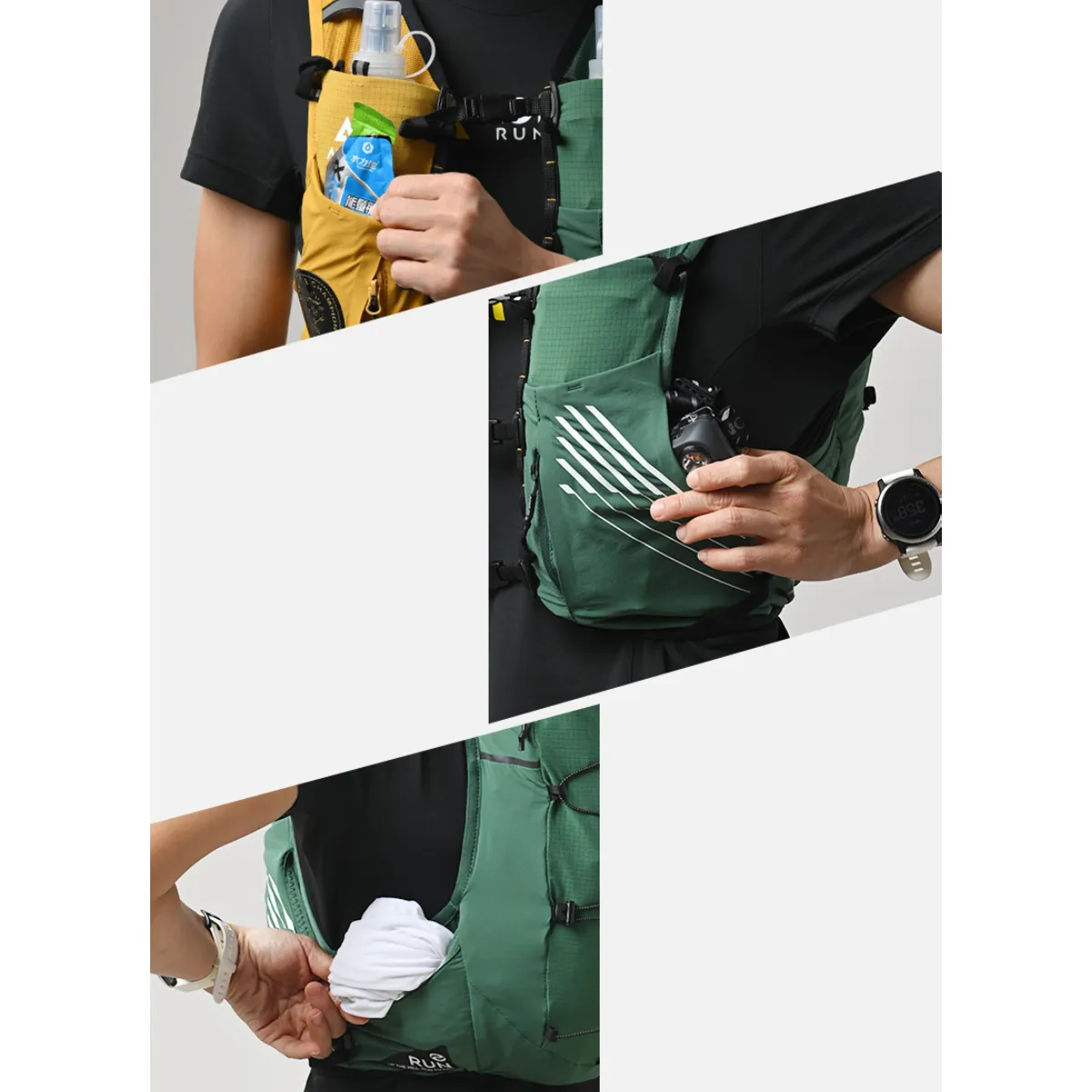 • Dos bolsillos delanteros de malla para soft flasks de 500 ml (no incluidos).