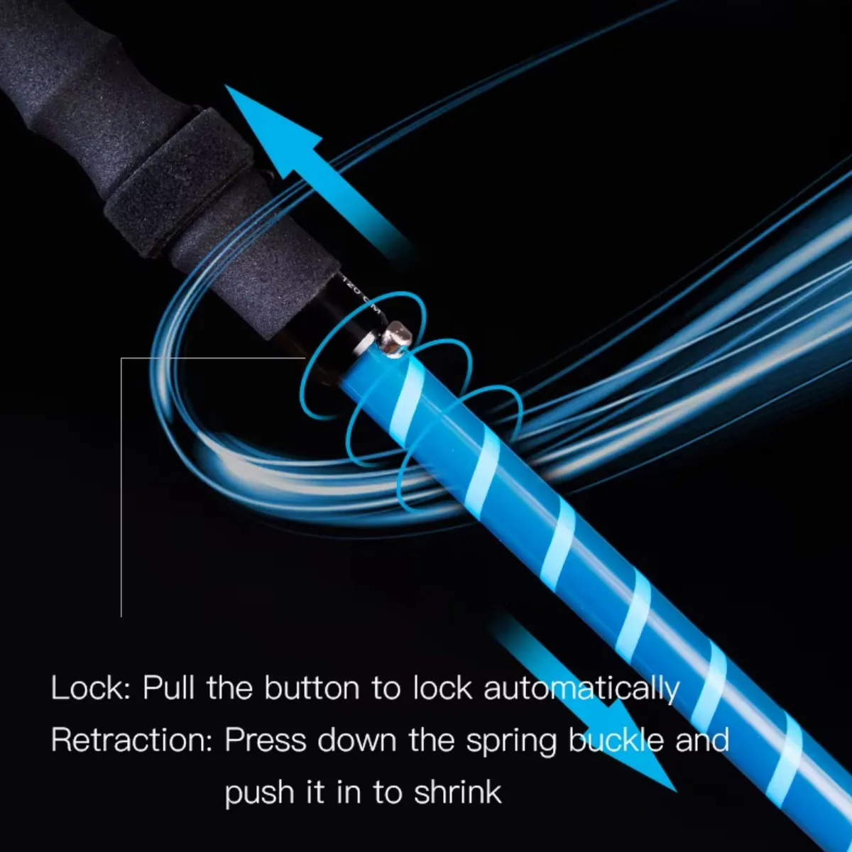 Diseñado con aleación de aluminio ultraliviano 7075, este bastón plegable en tres tramos ofrece una relación peso/resistencia excepcional. Su sistema de montaje rápido y su diseño compacto lo hacen ideal para trail running y trekking. Incluye roseta desmontable para arena / barro y empuñadura de espuma EVA para mayor comodidad y funcionalidad.